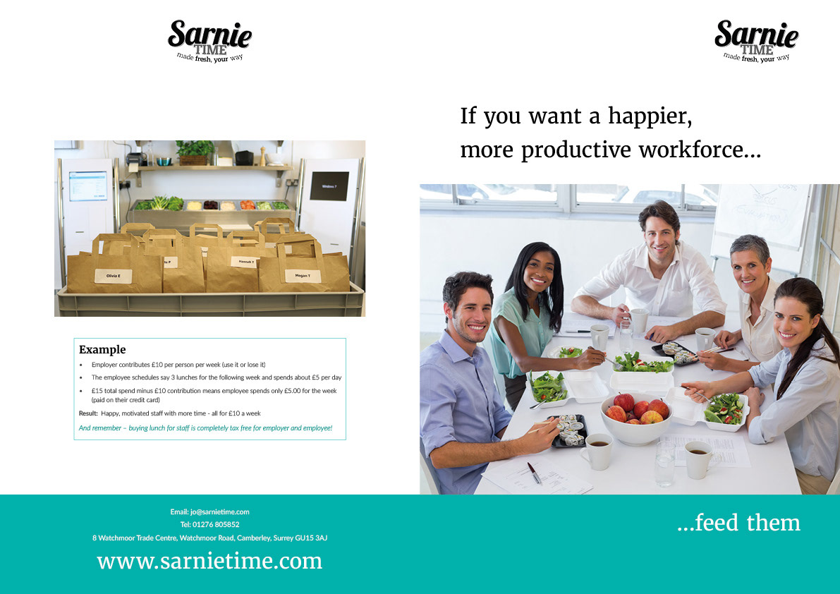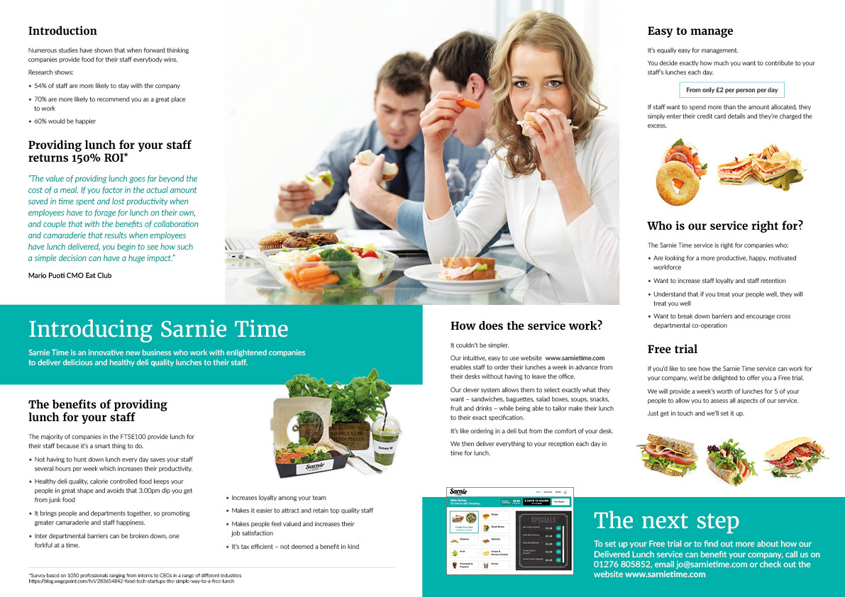 A 4 page A4 brochure to launch Sarnie Time. Artwork displayed in spreads.